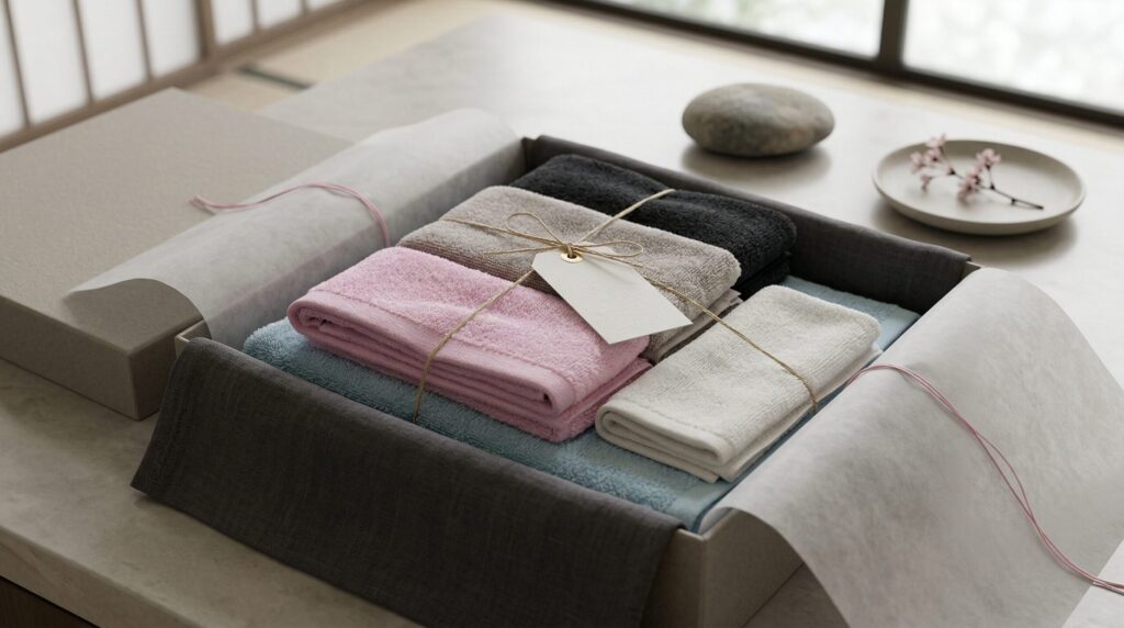 反対に、質のよいタオルは、使うたびに「気持ちいい」と感じてもらえます。その感覚は、言葉以上にブランドの印象を高めます。上質なものを選ぶ企業は、細部まで気を配る企業として記憶される。大切な相手に渡すものだからこそ、触れ心地や見た目の美しさ、仕立ての良さまで含めて選ぶことが、強い差別化につながります。