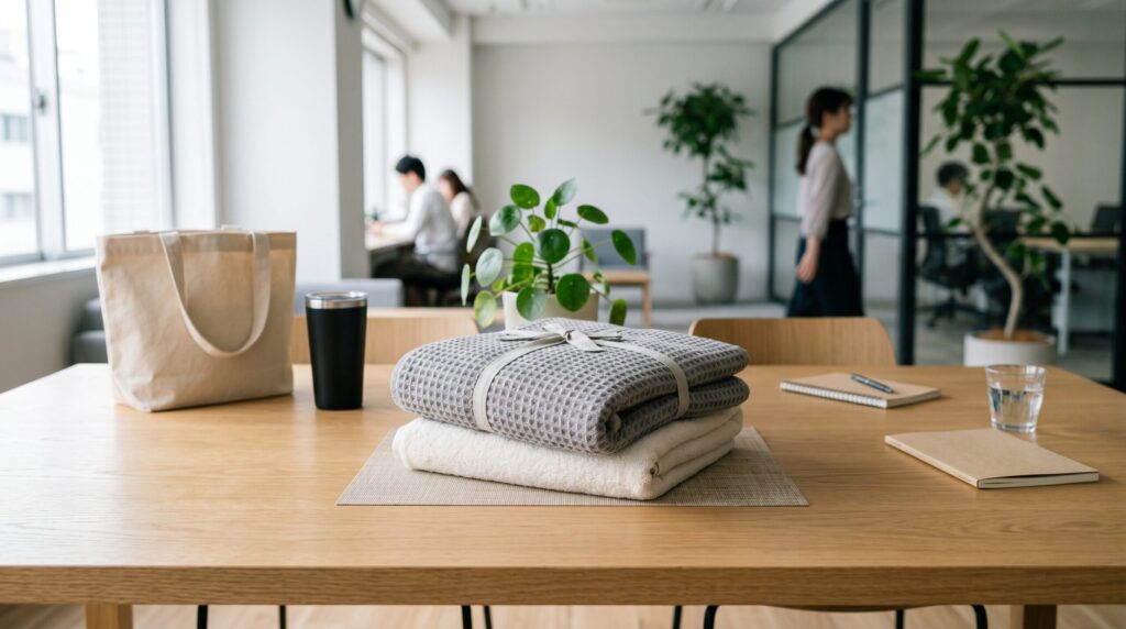 この流れで再評価されているのがタオルです。毎日使われる、かさばらない、ロゴが視認される、そしてサステナブル文脈にも乗せやすい。さらに、今治タオルなど“産地ブランド”を背負わせれば、企画書の見栄え自体が変わります。